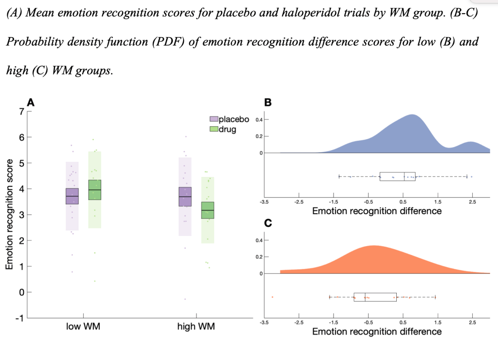 By controlling for interindividual differences in baseline dopamine function we revealed effects of haloperidol on emotion recognition in healthy individuals and investigated potential mechanistic pathways via which dopamine may modulate emotion recognition. Our findings suggest that dopamine may influence emotion recognition via its effects on temporal processing, providing new directions for future research on typical and atypical emotion recognition.